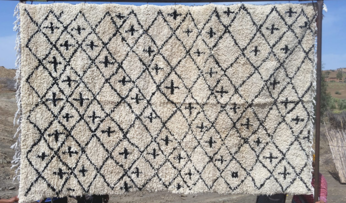 • Beni Ourain Rugs: Beni Ourain rugs may feature simple geometric symbols that hold spiritual and protective meanings for the Berber people. The rugs are often associated with purity and protection.