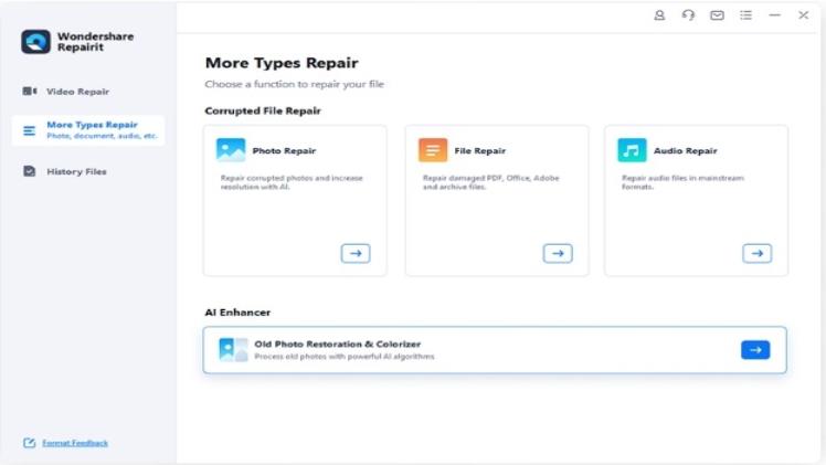 Step 1: Download and install Repairit, then activate it. Select “Old Photo Restoration & Colorizer” from “More Types of Repairs” and select “Add” to upload photos from your computer that were taken long ago.